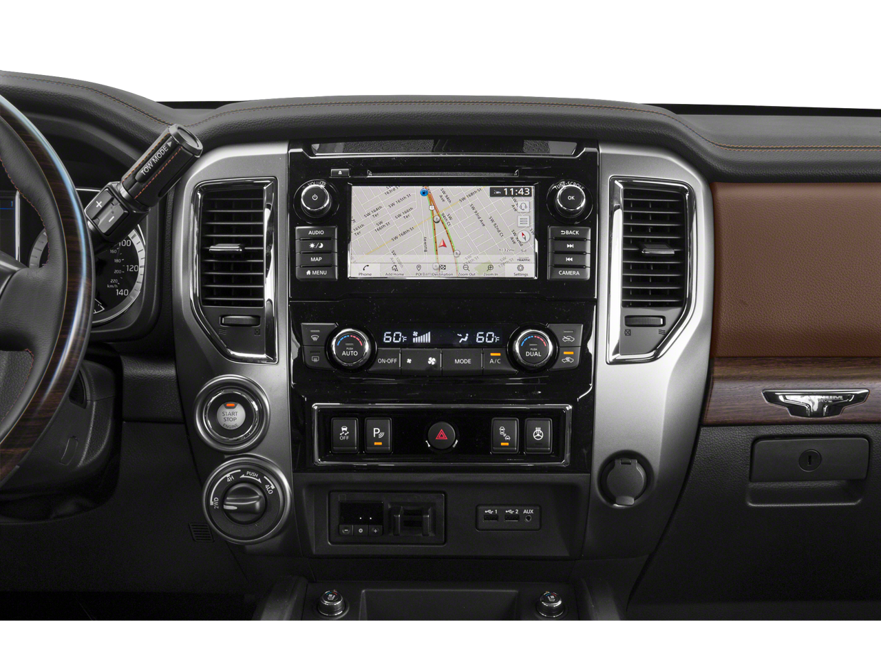 Leather Seats, Navigation, 4x4, Heated Driver Seat, Heated Rear Seat, Cooled Driver Seat, Back-Up Camera, Running Boards, Diesel, Premium Sound System, Satellite Radio, iPod/MP3 Input, Onboard Communications System, Trailer Hitch, Chrome Wheels Nissan Platinum Reserve with Forged Copper Metallic exterior and Black/Brown interior features a 8 Cylinder Engine with 310 HP at 3200 RPM*.