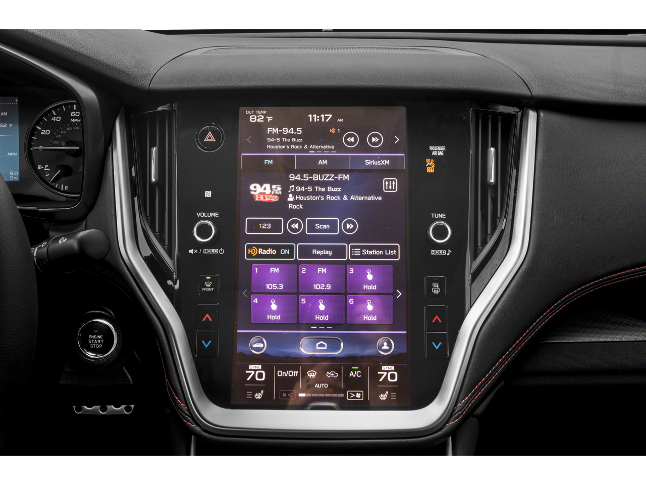- Radio: Subaru STARLINK 11.6" Multimedia Plus Sys -inc: AM/FM stereo, HD Radio, voice activated controls, Bluetooth® audio streaming and hands-free phone connectivity w/SMS text messaging (applicable w/compatible cellphone), Near Field Communication (NFC), iPod control capability, SiriusXM All Access radio (subscription required), SiriusXM Travel Link (subscription required), smartphone integration: Android Auto, CarPlay and STARLINK cloud applications, 6 speakers, 3.5mm auxiliary input jack and front and rear dual USB ports