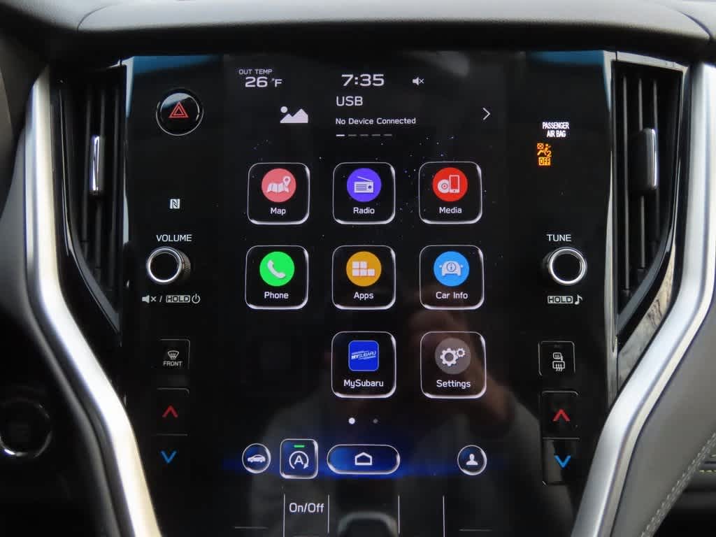 - Radio: Subaru STARLINK 11.6" Multimedia Plus Sys -inc: AM/FM stereo, HD Radio, voice activated controls, Bluetooth® audio streaming and hands-free phone connectivity w/SMS text messaging (applicable w/compatible cellphone), Near Field Communication (NFC), iPod control capability, SiriusXM All Access radio (subscription required), SiriusXM Travel Link (subscription required), smartphone integration: Android Auto, CarPlay and STARLINK cloud applications, 6 speakers, 3.5mm auxiliary input jack and dual USB input ports