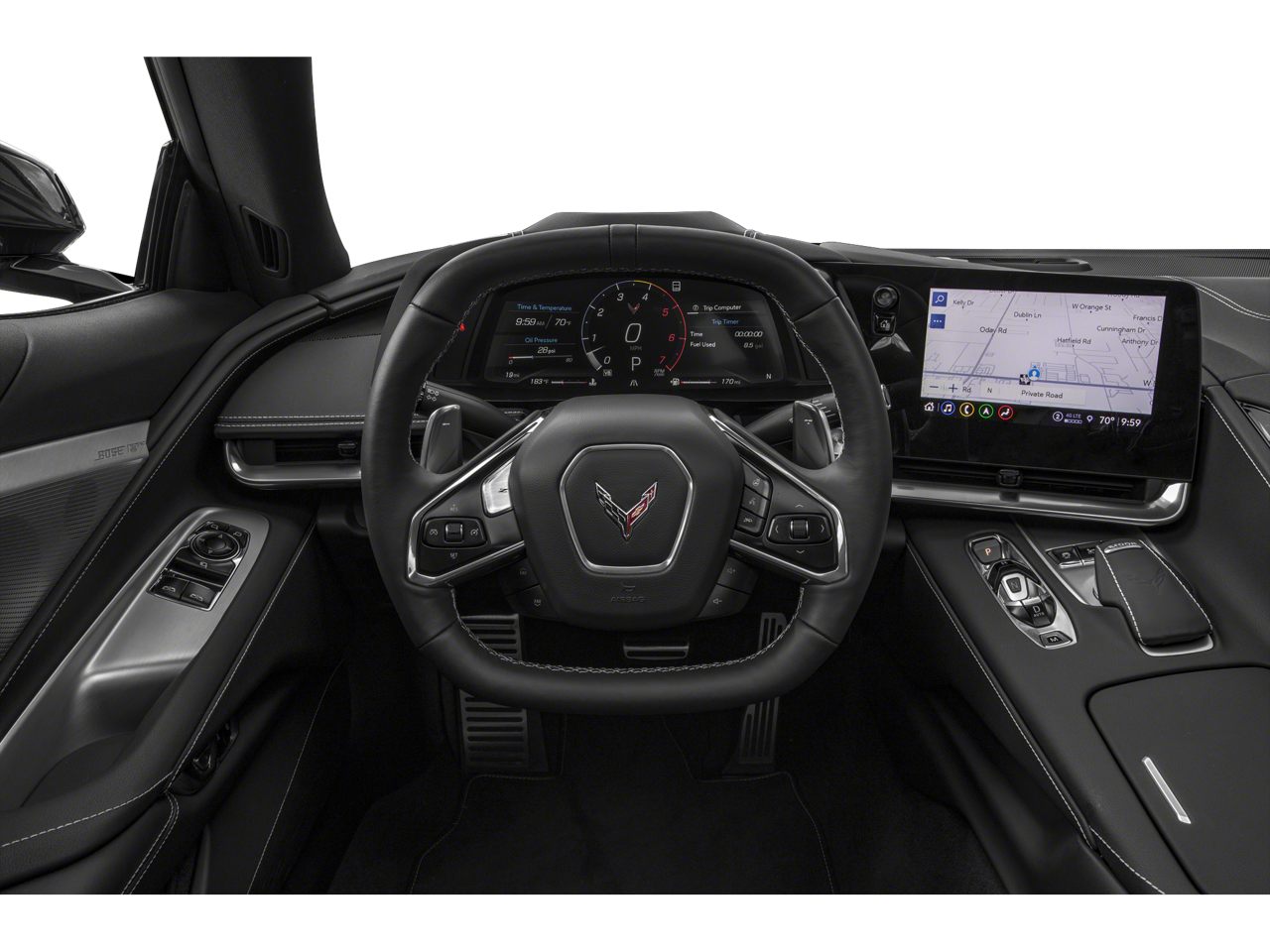 Z51 PERFORMANCE PACKAGE includes (J55) Z51 performance brakes, (FE3) Z51 performance suspension, (NPP) performance exhaust, (GM7) performance rear axle ratio, (G96) Electronic Limited Slip Differential (eLSD), (T0A) Z51 rear spoiler, front splitter, (XFQ) 245/35ZR19 front and 305/30ZR20 rear, blackwall, high performance tires and (V08) heavy-duty cooling system, ROOF PANEL, TRANSPARENT, REMOVABLE, WHEELS, 19 X 8.5 (48.3 CM X 21.6 CM) FRONT AND 20 X 11 (50.8 CM X 27.9 CM) REAR 5-OPEN-SPOKE CARBON FLASH-PAINTED ALUMINUM WITH MACHINED EDGE, AUDIO SYSTEM, CHEVROLET INFOTAINMENT 3 PREMIUM SYSTEM WITH CONNECTED NAVIGATION 8 diagonal HD color touchscreen, AM/FM stereo, Bluetooth® audio streaming for 2 active devices, Apple CarPlay® and Android Auto® capable, enhanced voice recognition, additional memory for in-vehicle apps, cloud connected personalization for select infotainment and vehicle settings. (STD), ENGINE, 6.2L V8 DI, HIGH-OUTPUT Variable Valve Timing (VVT), Active Fuel Management (AFM) (490 hp [365.4 kW] @ 6450 rpm, 465 lb-ft of torque [627.8 N-m] @ 5150 rpm) (STD), TRANSMISSION, 8-SPEED DUAL CLUTCH, INCLUDES MANUAL AND AUTO MODES (STD). Keyless Entry, Remote Trunk Release, Electronic Stability Control, Heated Mirrors, Bucket Seats.